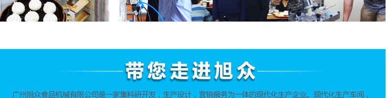 廣州旭眾食品機械有限公司是一家集科研開發,生產設計,營銷服務為一體的現代化生產企業。現代化生產車間,精湛制造技術,所產機械歷經市場重重考驗,不斷贏得海內外客戶的贊譽。