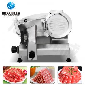 臺式全自動切片機,適合切無骨肉類和其他類似榨菜帶有彈性的食物,把原材料肉切成肉片,并可自動成卷狀。可切牛肉片、羊肉片等