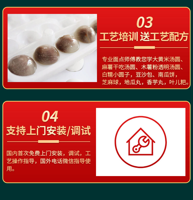 4000C湯圓機(jī),多功能湯圓機(jī),運(yùn)行穩(wěn)定、時產(chǎn)量高、大小可調(diào)。制品多樣性生產(chǎn)各種大小規(guī)格不同的有餡湯圓,無餡湯圓、豆沙包、南瓜餅,芝麻球,地瓜丸,香芋丸,葉兒粑,青團(tuán),粘豆包等。