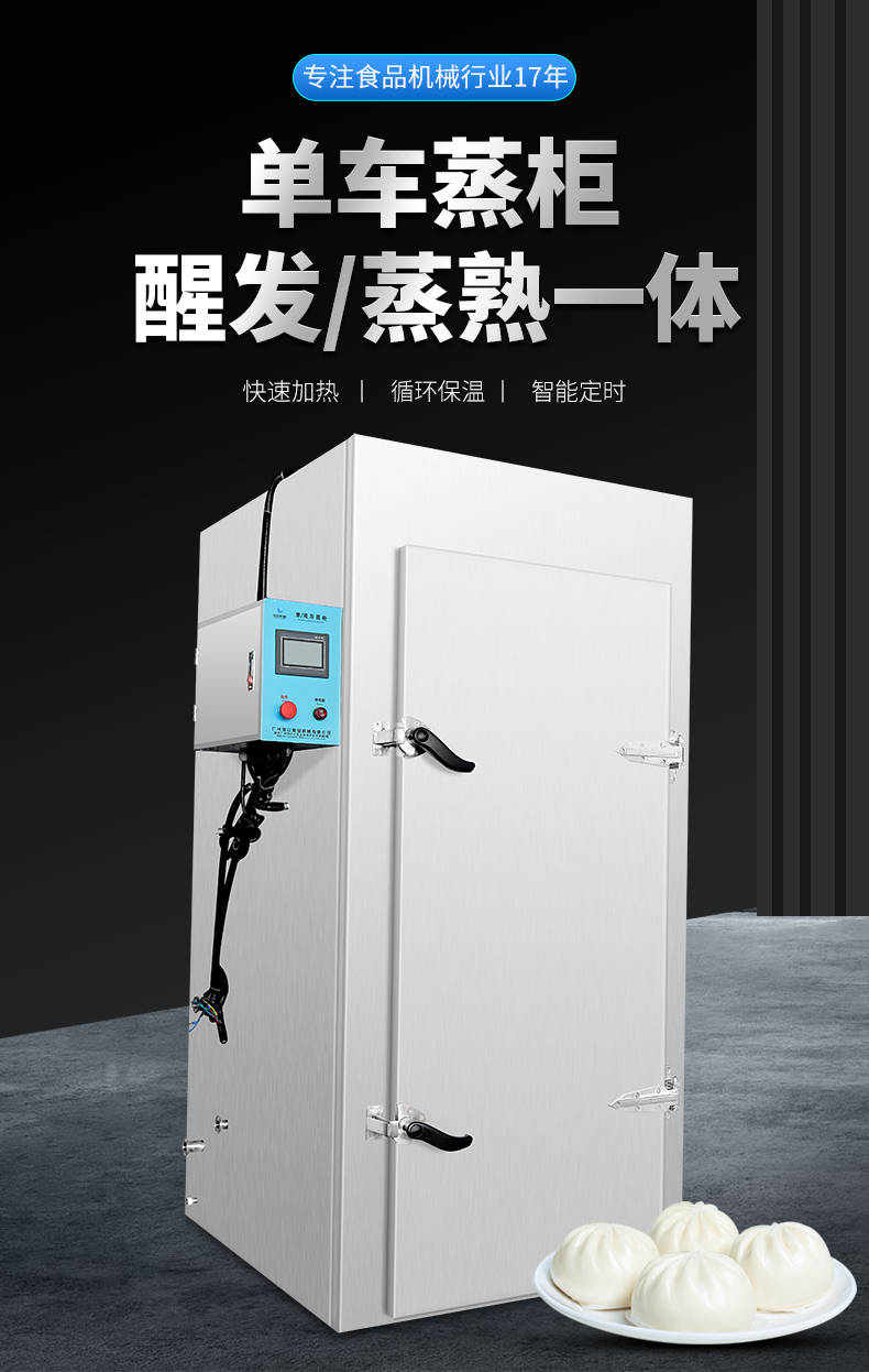 單車蒸柜,整機不銹鋼材質本機由內膽殼、保溫層、外護板組成,整機采用優質不銹鋼,加上硅膠密封及硅酸鋁保溫材料,堅固、耐用、保溫效果好,外形美觀。循環均勻發熱,專門用于發熱管干燒空氣,溫度任意調節,讓食物口感怡到好吃
